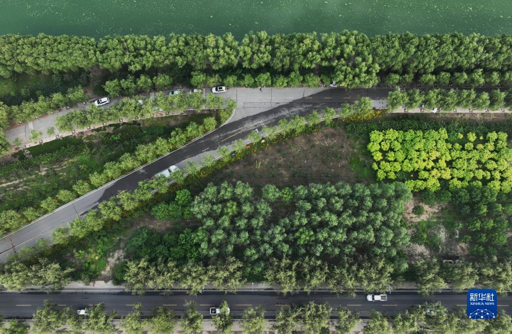 8月22日拍攝的唐山市豐南區(qū)城區(qū)通往南孫莊鎮(zhèn)的唐津運(yùn)河景觀路(無(wú)人機(jī)照片)。