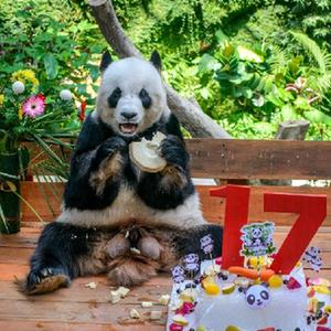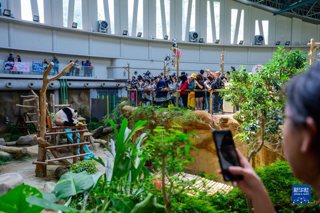 在馬來西亞國家動(dòng)物園大熊貓保護(hù)中心內(nèi),中國旅馬大熊貓夫婦“興興”和“靚靚”23日迎來了17歲生日。