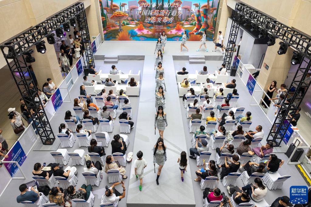 8月23日,模特在襪品流行趨勢發布會上展示產品。