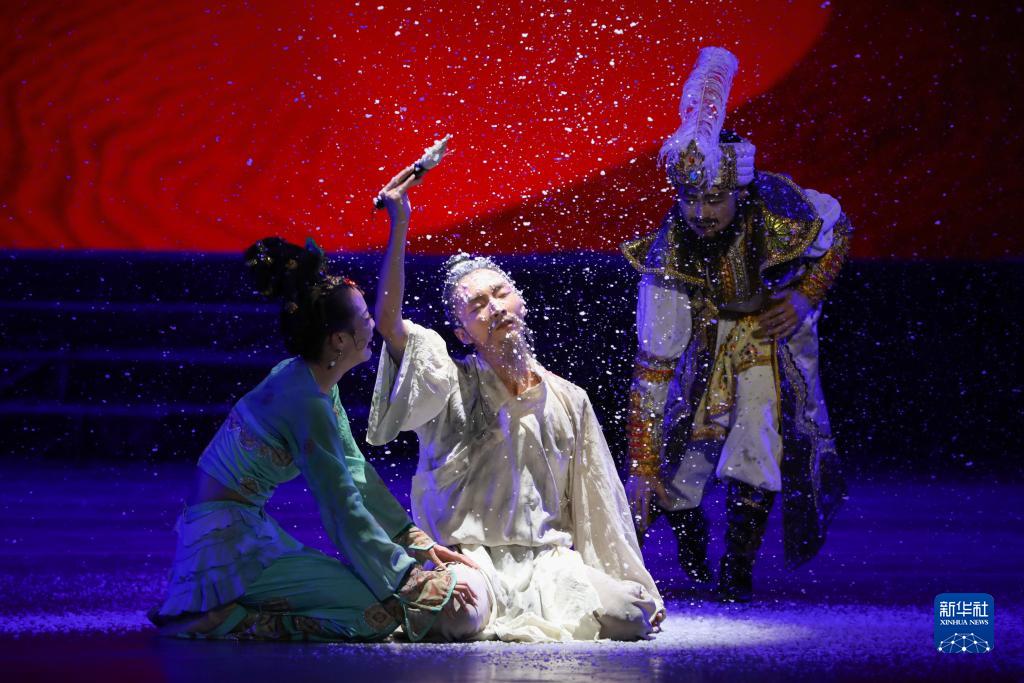 近日,中國經典舞劇《絲路花雨》在甘肅省蘭州市的甘肅黃河劇院常態化駐場演出,甘肅省歌舞劇院的演員們演繹了優美動人的敦煌壁畫舞姿。
