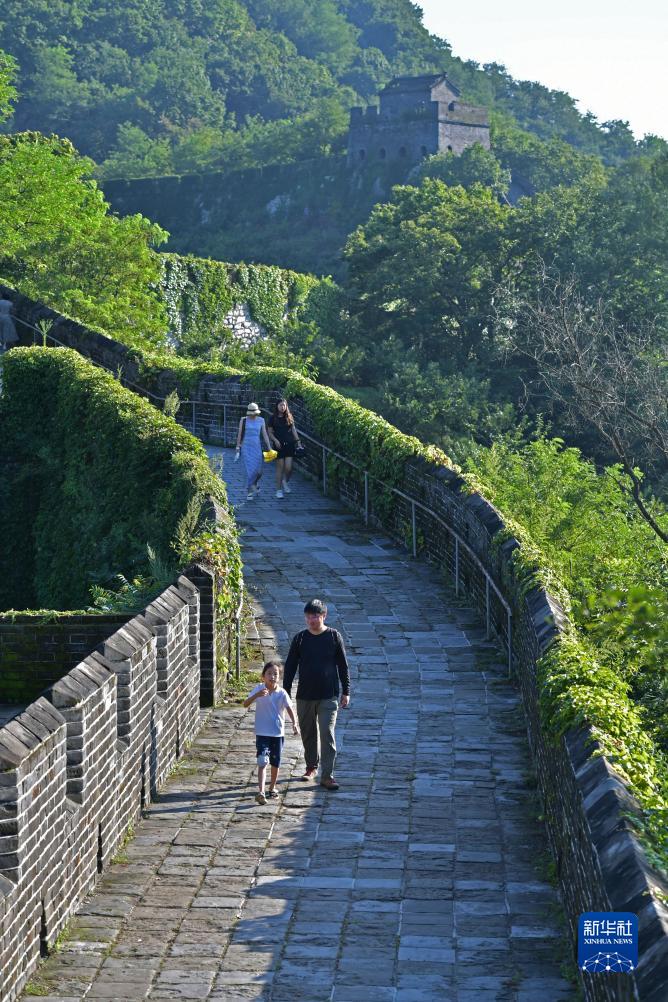 虎山位于遼寧省丹東市鴨綠江畔,夏日,在植被映襯下,長城蜿蜒多姿,壯美秀麗,吸引游客前來參觀游覽。