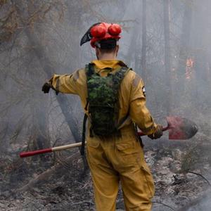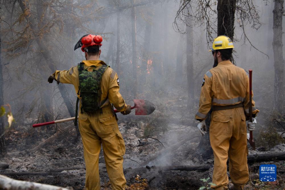 8月22日,加拿大軍人在西北地區(qū)一處火場(chǎng)進(jìn)行滅火作業(yè)。