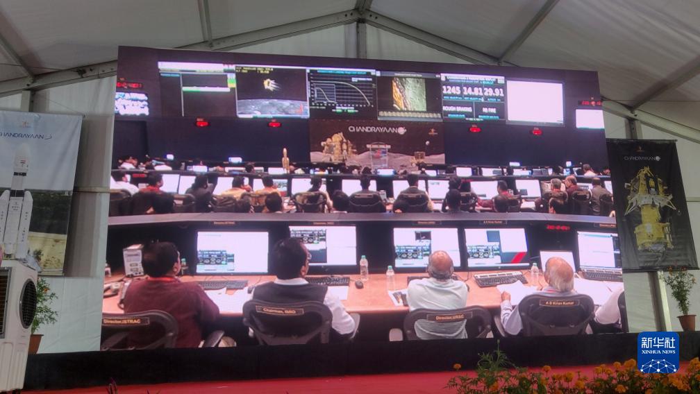 印度空間研究組織23日說,印度月球探測器“月船3號”所攜帶的著陸器當(dāng)天成功在月球南極著陸。