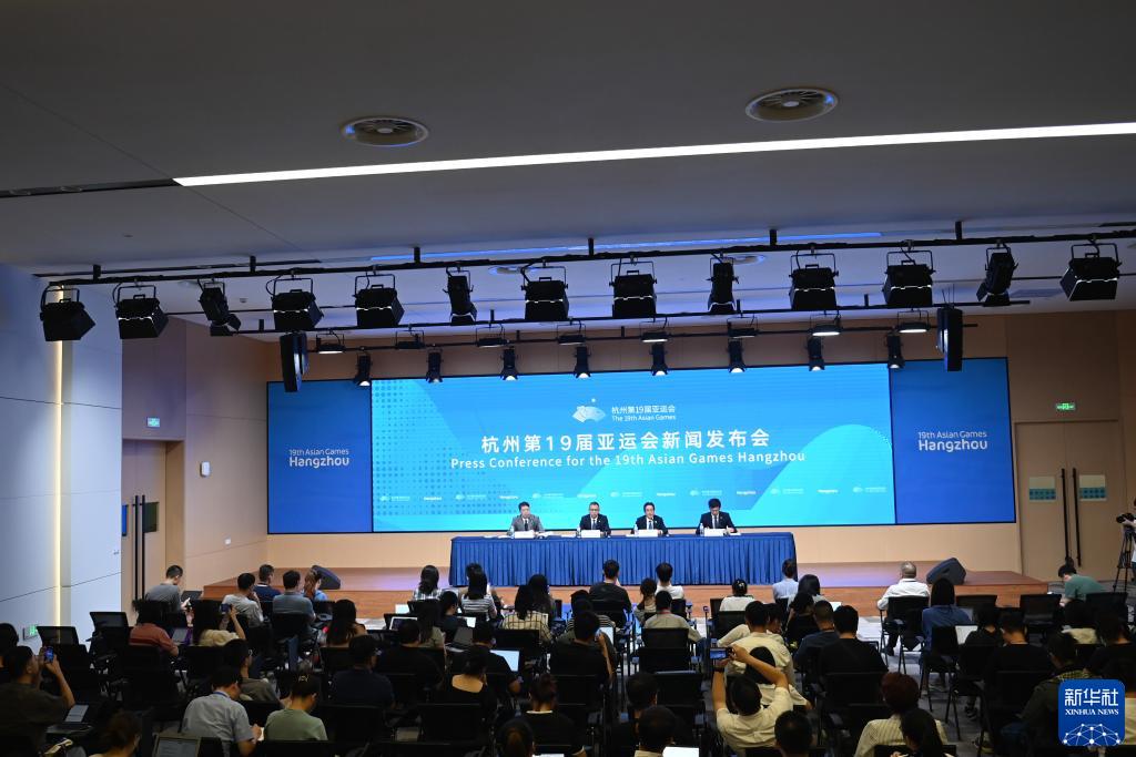 8月24日拍攝的杭州亞運(yùn)會(huì)新聞發(fā)布會(huì)現(xiàn)場。