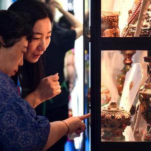 8月24日,參觀者在第十四屆中國—東北亞博覽會現場選購尼泊爾特色商品。