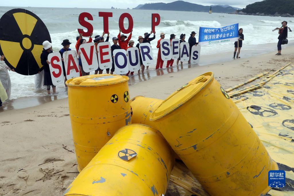 8月24日,韓國市民團體在釜山海云臺海水浴場集會,抗議日本核污染水排海。