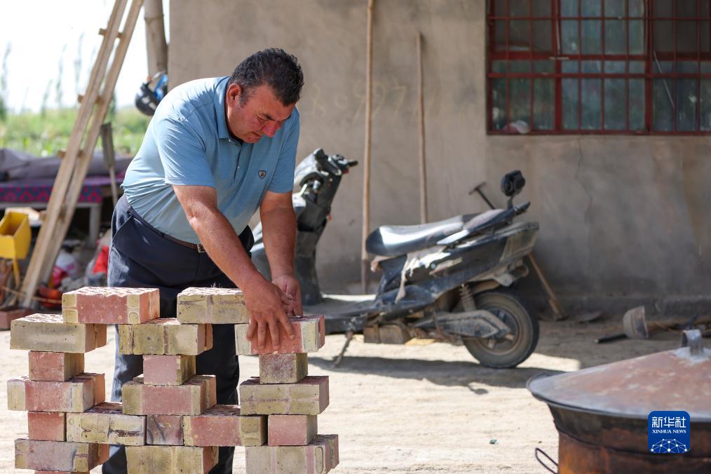 8月17日,爾肯·熱衣木在修葺花墻,準(zhǔn)備把自家棉田小院裝修后開一家農(nóng)家樂。
