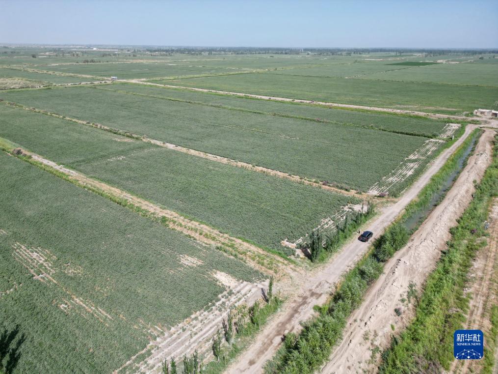 8月17日,爾肯·熱衣木駕駛自己的新買的車行駛在棉田間(無人機(jī)照片)。