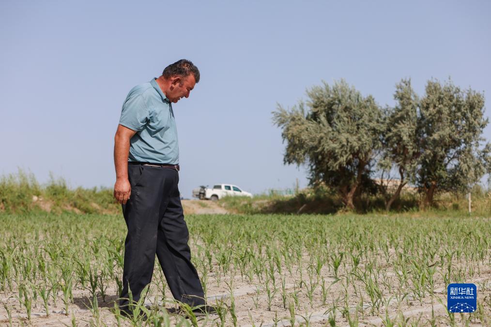8月17日,爾肯·熱衣木查看第二茬青貯玉米生長情況,第一茬青貯玉米7月份已經收割。