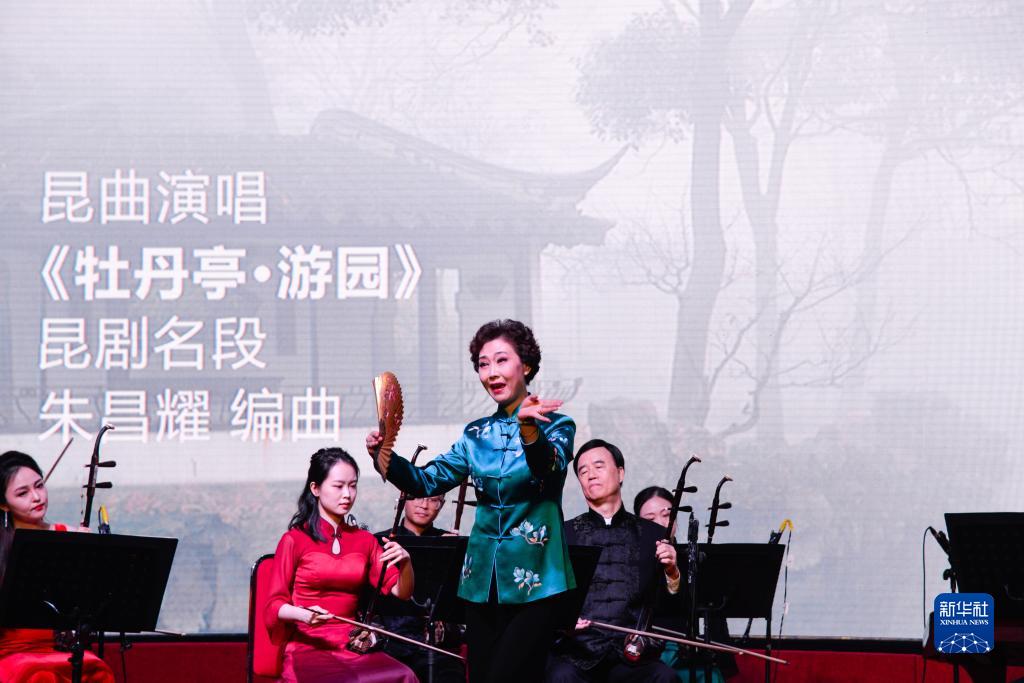 8月24日,在印度尼西亞雅加達(dá)太陽城,表演者演唱昆曲《牡丹亭·游園》。
