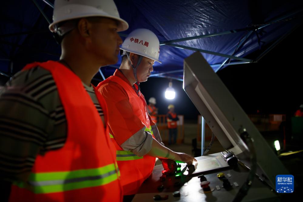 8月25日,工作人員在操作設備以控制尖坡寨特大橋轉體角度。