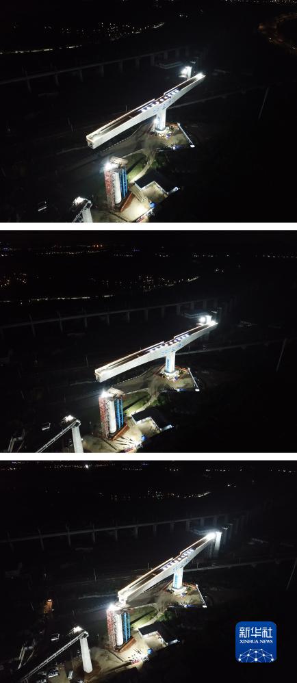 這張拼版照片展示的是尖坡寨特大橋轉體過程(無人機照片,8月25日攝)。