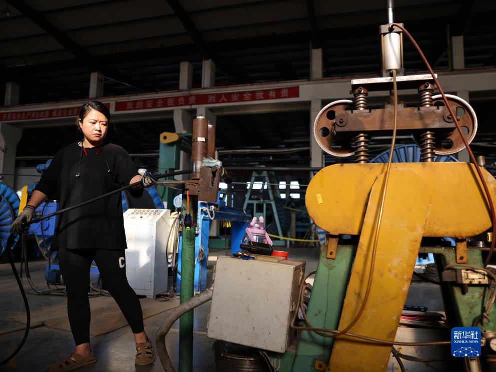 8月24日,工人在河北省邢臺市寧晉縣金世紀電纜集團有限公司生產車間工作。