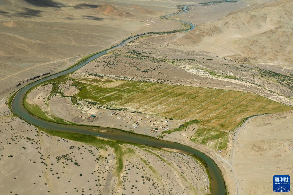 俯瞰布貢村青稞田(8月24日攝,無人機照片)。