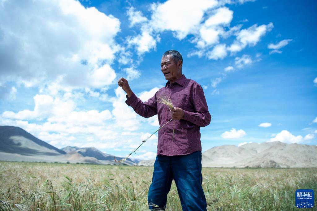藍天白云下,微風拂過,一株株青稞露出飽滿的果實。已經見過如此美景40多次的久美心情依然激動:“今年,我還要像以前那樣揮舞鐮刀、收割青稞。這片田見證了我們生活的變化,我對它很有感情。有田在,我心安。”