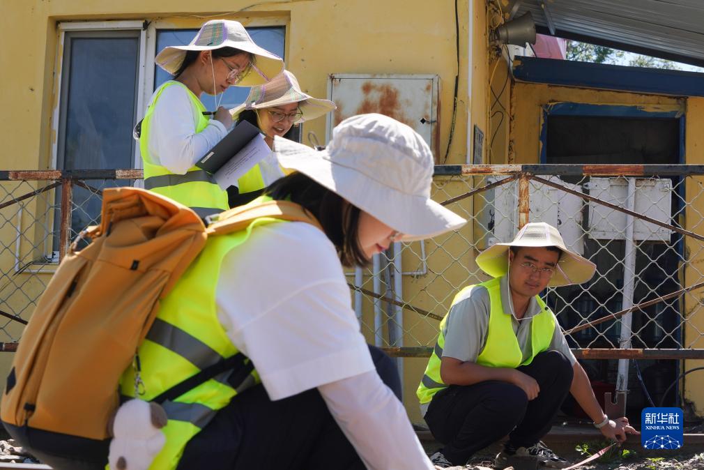 在黑龍江省雙鴨山市集賢縣的鐵路沿線,部分勘察班組成員在鐵路既有線開展測量作業(8月24日攝)。