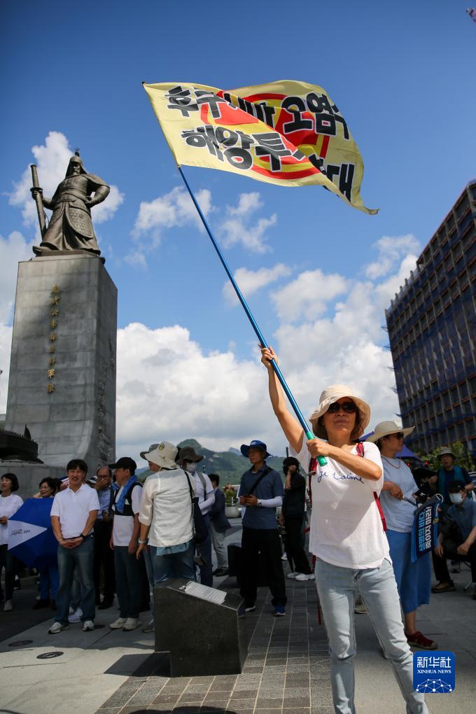當(dāng)日,韓國最大在野黨共同民主黨成員和眾多市民聚集在首爾光化門廣場,手舉標(biāo)語進(jìn)行示威游行,抗議日本核污染水排海。日本政府24日啟動福島核污染水排海,這一決定遭到國際社會的批評和反對。