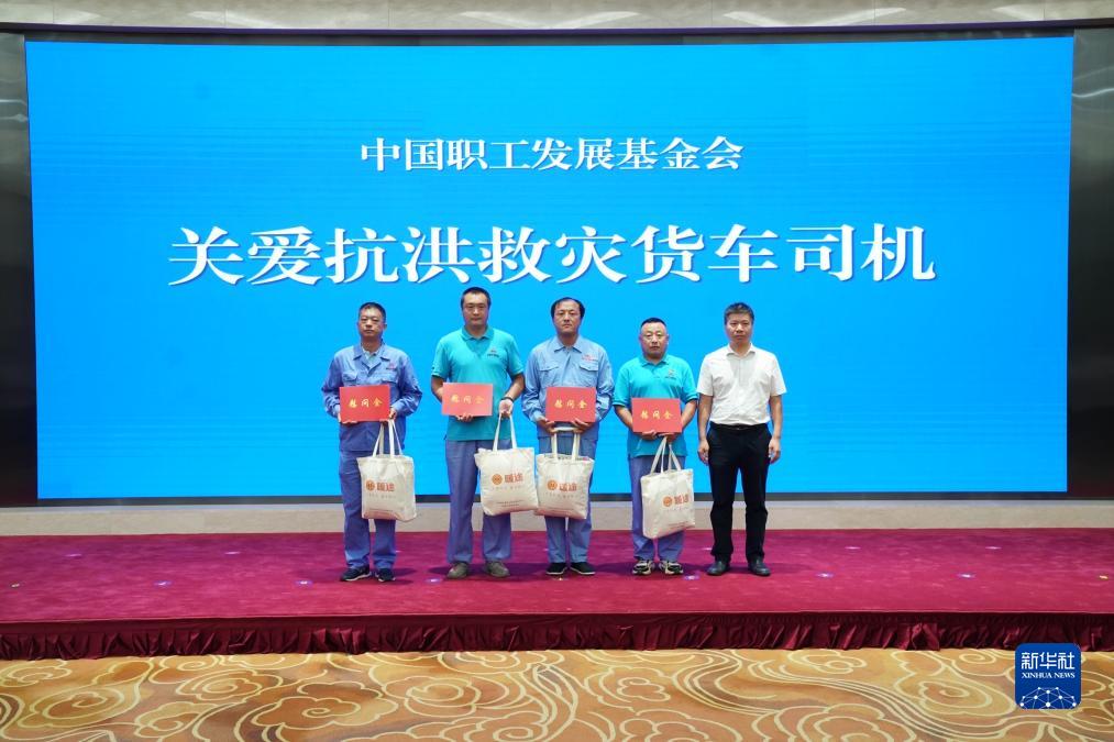 8月25日,在2023年“暖途·貨車司機職業發展與保障行動”啟動儀式上,在京津冀抗洪搶險中作出重要貢獻的貨車司機代表接受慰問。