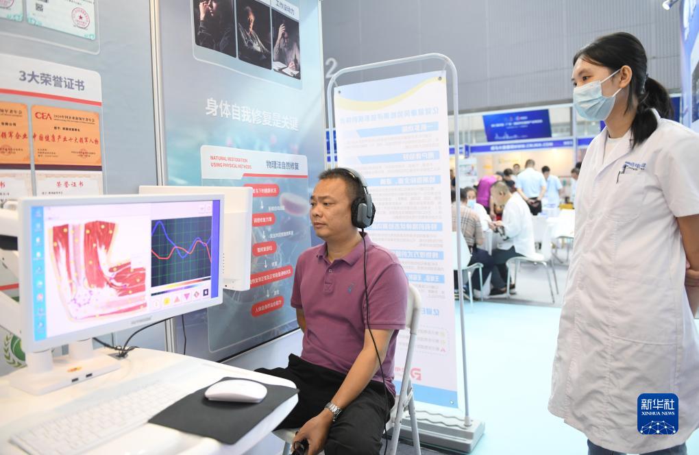 8月25日,市民在廣州博覽會上現場體驗身體健康檢查。