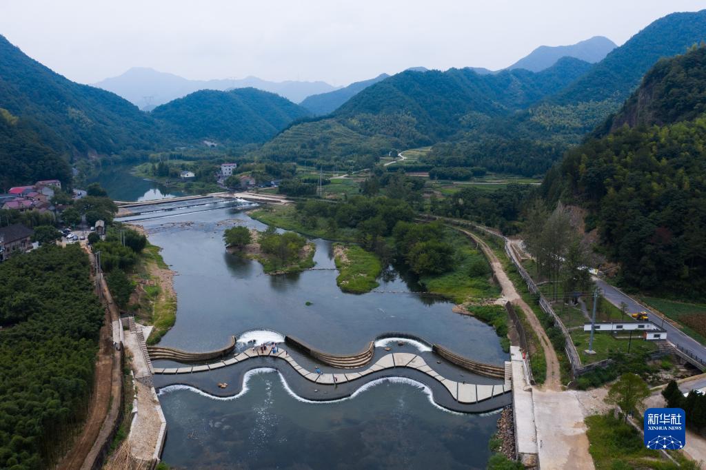 8月25日,空中俯瞰湖源鄉石龍村壺源溪流域(無人機照片)。