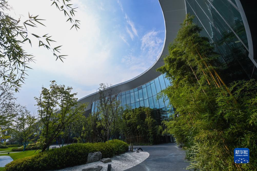 這是8月24日拍攝的杭州富陽水上運動中心的中庭花園,花園里種植的植物使用回收的雨水進行澆灌。新華社記者 徐昱 攝