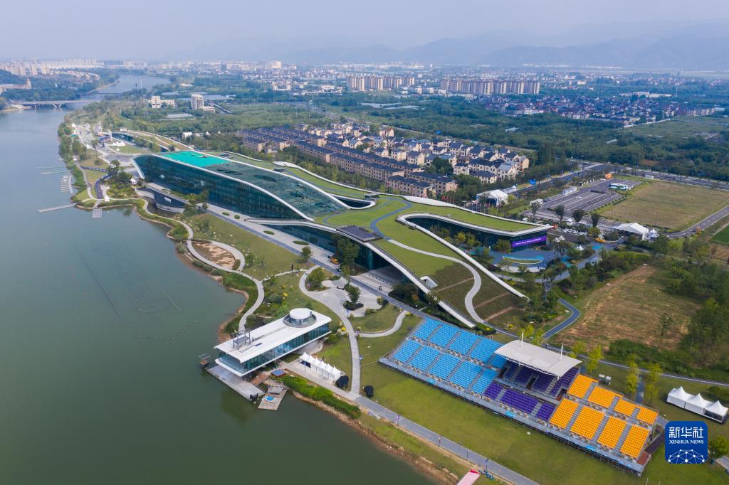 8月24日,空中俯瞰杭州富陽水上運(yùn)動中心,屋頂被綠植覆蓋(無人機(jī)照片)。新華社記者 徐昱 攝