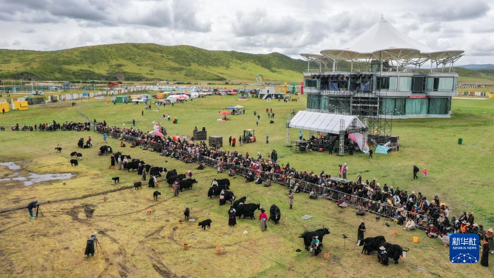 這是8月25日在四川省阿壩藏族羌族自治州紅原縣雅克音樂牧場拍攝的牦牛產奶量比賽現場(無人機照片)。