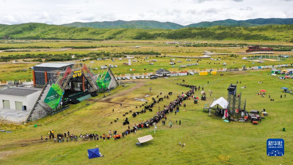 這是8月25日在四川省阿壩藏族羌族自治州紅原縣雅克音樂牧場拍攝的牦牛產奶量比賽現場(無人機照片)。