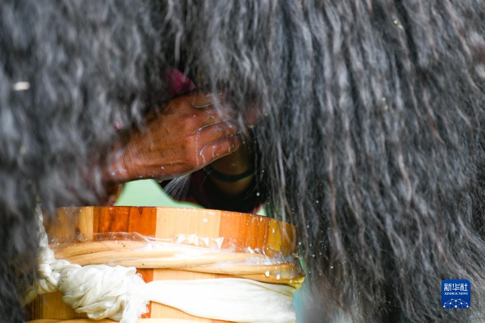 8月25日,在四川省阿壩藏族羌族自治州紅原縣雅克音樂牧場,參賽者在擠牦牛奶。