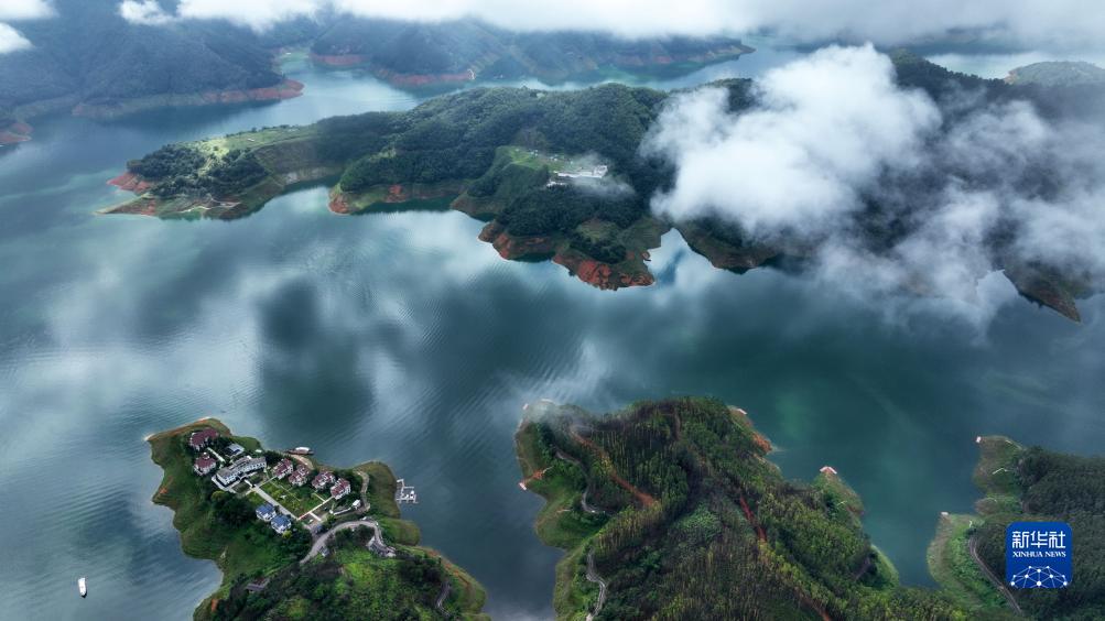8月25日拍攝的貴州省黔西南布依族苗族自治州興義市萬峰湖景區(qū)風(fēng)光(無人機(jī)照片)。新華社記者 楊楹 攝