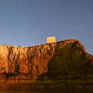 黃河老牛灣位于內蒙古自治區和山西省交界處。夜空下,峽谷兩岸壁立千仞,黃河奔流不息,明長城依山而行,風光壯美。