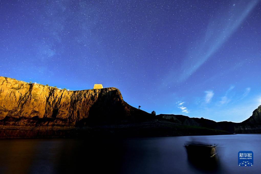 黃河老牛灣位于內蒙古自治區和山西省交界處。夜空下,峽谷兩岸壁立千仞,黃河奔流不息,明長城依山而行,風光壯美。