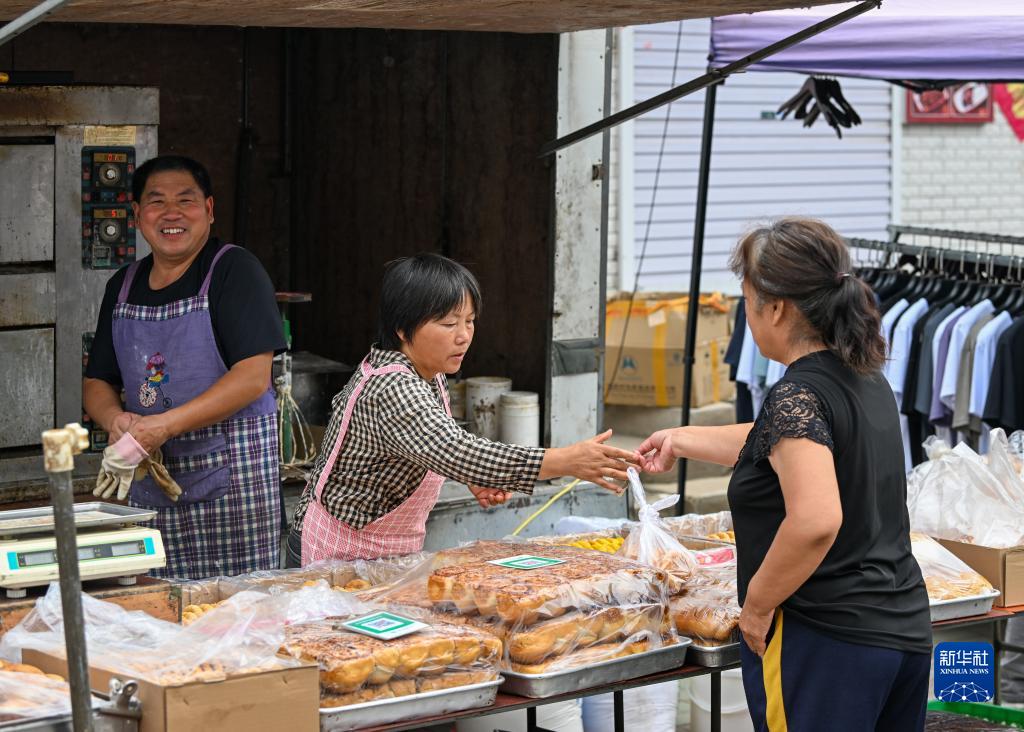 8月25日,在天津市靜海區臺頭鎮,前來趕集的村民在大集上購買商品。