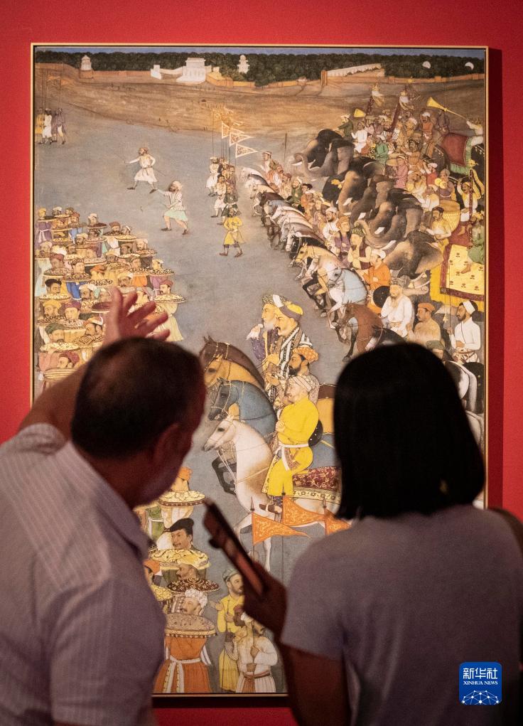 8月24日,在耶路撒冷舉行的古代阿拉伯世界飲食文化展上,人們觀看描繪婚宴場(chǎng)景的繪畫。