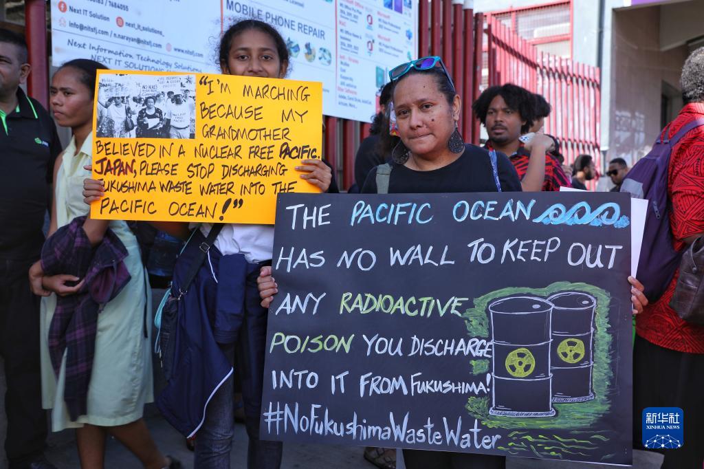 當日,數百名斐濟民眾沿街游行,強烈抗議日本政府啟動福島第一核電站核污染水排海,呼吁國際社會采取行動保護太平洋生態和子孫后代的福祉。