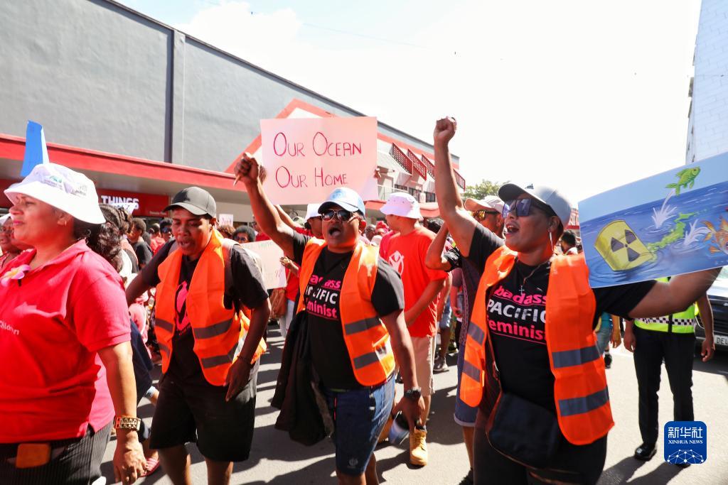 當日,數百名斐濟民眾沿街游行,強烈抗議日本政府啟動福島第一核電站核污染水排海,呼吁國際社會采取行動保護太平洋生態和子孫后代的福祉。