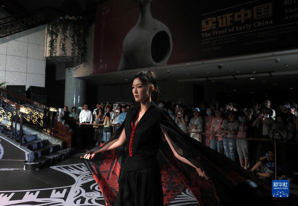 8月25日晚,模特在上博“研色·良渚之夜”綜合藝術秀上展示時裝。新華社記者 任瓏 攝