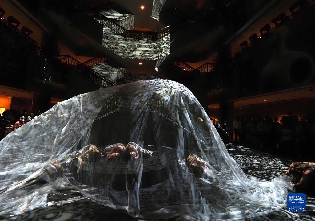 8月25日晚,演員在上博“研色·良渚之夜”綜合藝術秀上表演現代舞。新華社記者 任瓏 攝