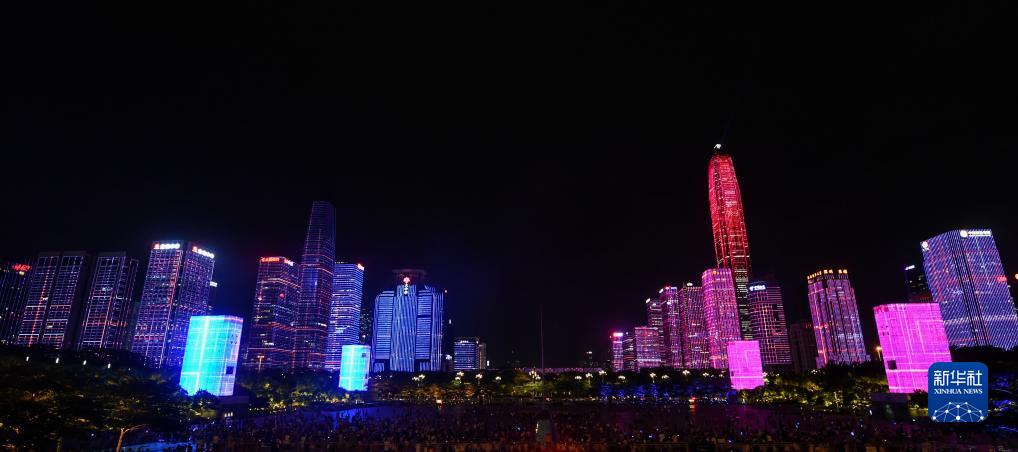 8月26日是深圳經濟特區成立43周年。25日晚,深圳以夜空為幕,以燈光為筆,點亮市區主要建筑為特區慶生。新華社記者 梁旭 攝