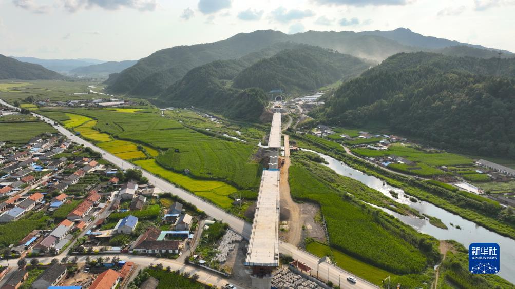 8月25日拍攝的沈白高鐵新賓隧道出口(無人機(jī)照片)。