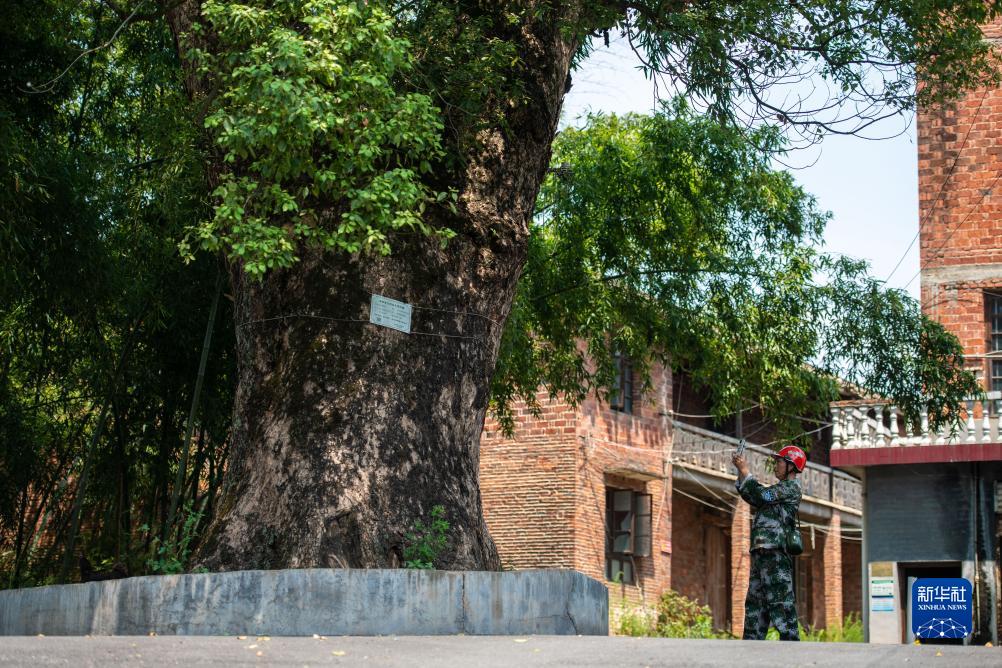 8月24日,在瀏陽市金剛鎮(zhèn)丹桂村,黃蔚谷記錄古樹生長情況。
