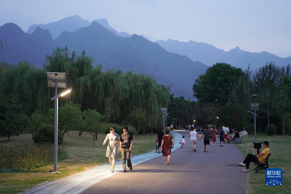 市民在位于西安市長安區的秦嶺和諧森林公園內散步(8月16日攝)。
