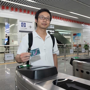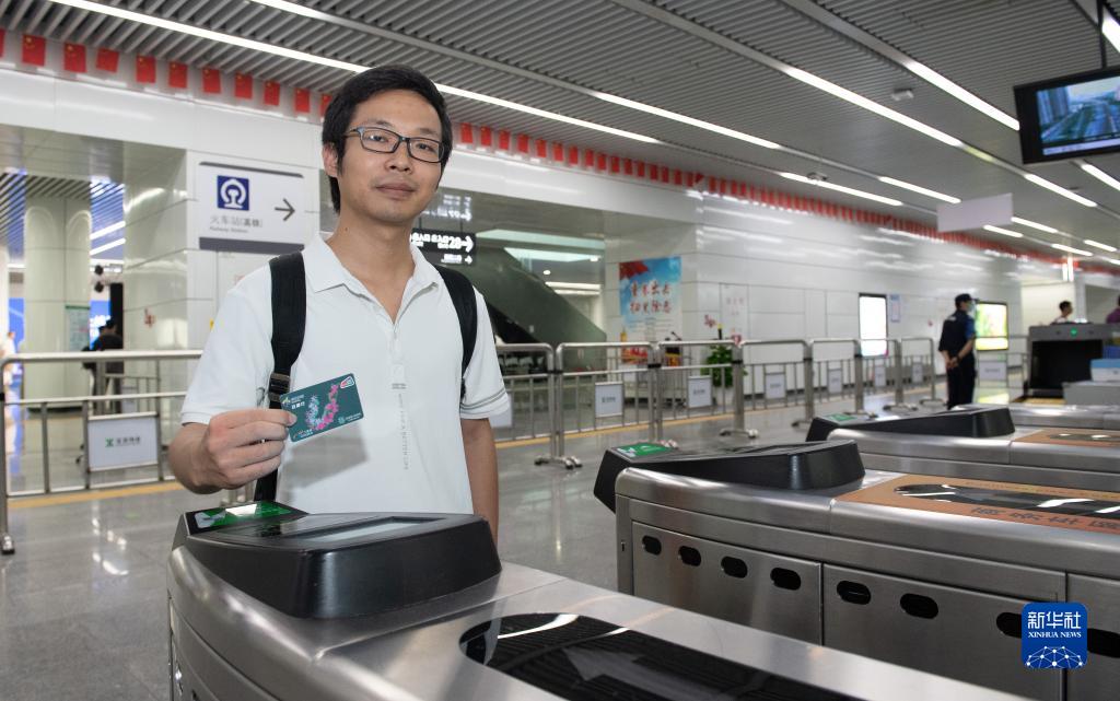 8月30日,在深圳福田站地鐵閘機入口,用戶持深港互通行卡準備刷卡。