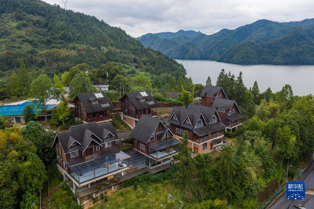 8月30日拍攝的緊水灘鎮(zhèn)龍門村的一家民宿(無人機(jī)照片)。該村通過打造村落景區(qū),引入高端民宿等提升鄉(xiāng)村旅游的發(fā)展水平。