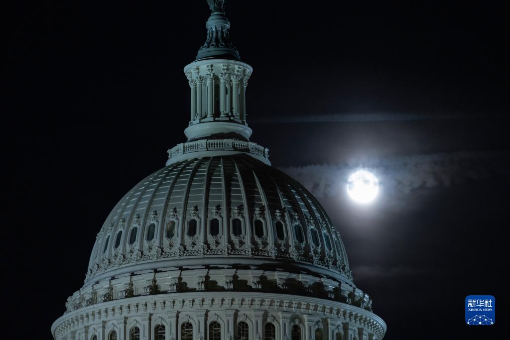8月30日,“超級月亮”在美國華盛頓國會上空升起。