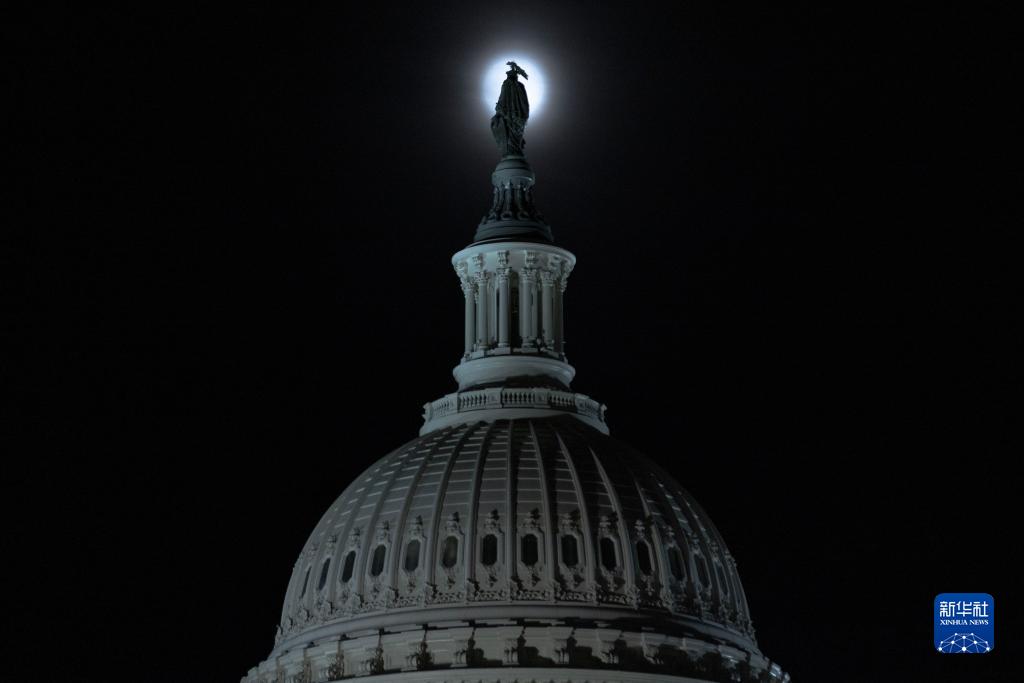 8月30日,“超級月亮”在美國華盛頓國會上空升起。