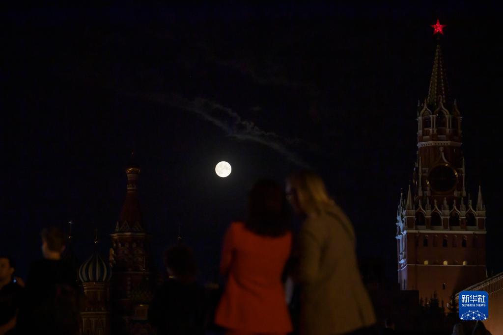 這是8月30日在俄羅斯首都莫斯科紅場附近拍攝的“超級月亮”。