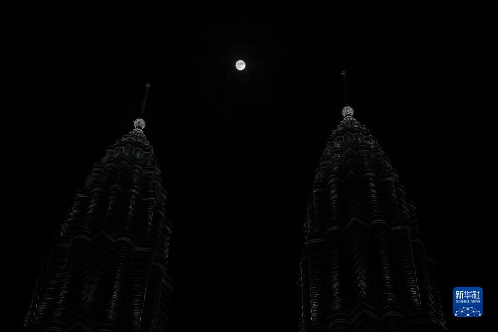 8月30日,“超級月亮”在馬來西亞吉隆坡雙子塔上空升起。