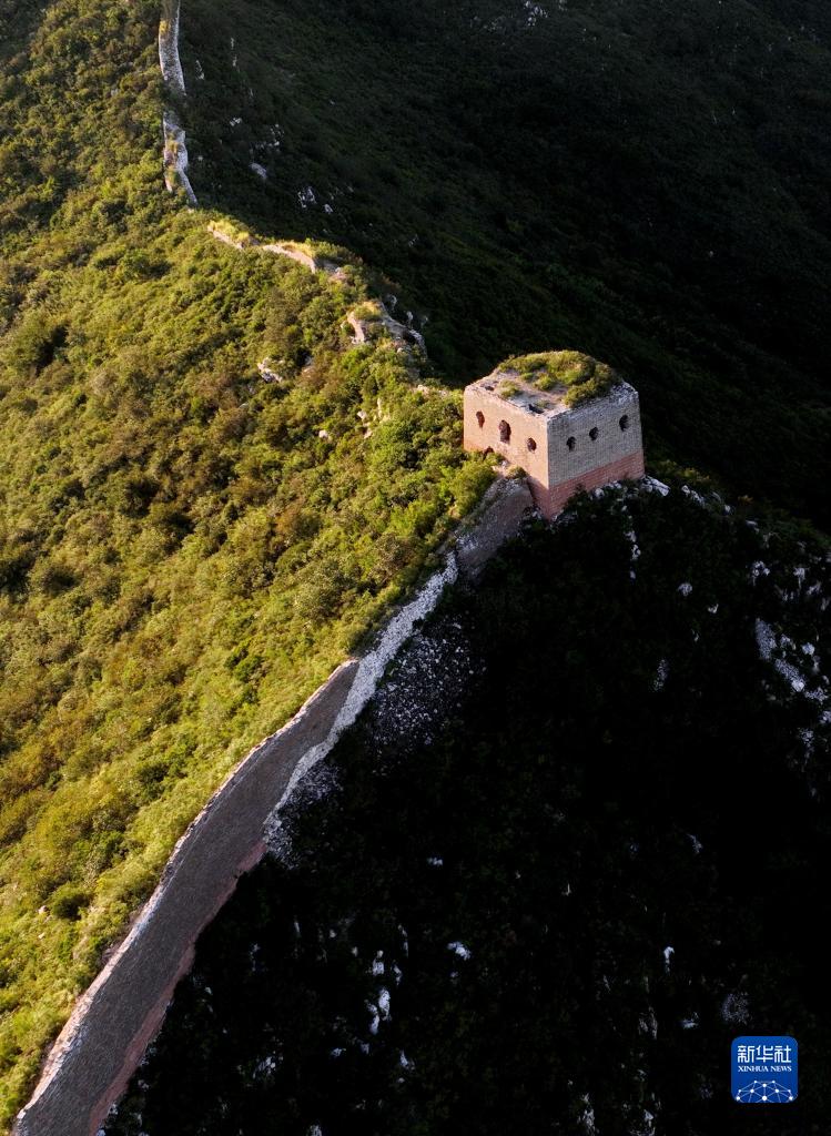 落日余暉中的河北唐山遷安市徐流口長城(8月29日攝,無人機照片)。