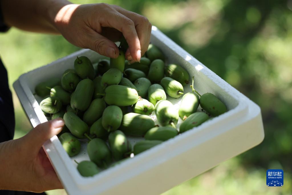 8月30日,河北省唐山市遷西縣鐵門關村村民在采收軟棗獼猴桃。